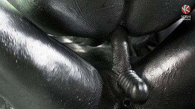 Daddy Shusaku and his boy Yoshi get covered in silver gunge. Their bodies take on its gleaming colour as they become metallic creatures. They feel their way around each other’s silvery bodies and fuck each other. Shusaku fists his boy with his big chunky hand. Yoshi screams in pleasure as though he'd never taken such a big meaty fist before. Daddy Shusaku uses Yoshi’s sloppy pussy to cum. Yoshi pushes Shusaku’s metallic load out of his red rosebud.