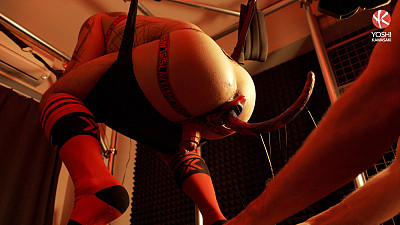 The second round of canine obedience training starts with a submissive whimper from pup Yoshi. His master Lawrence Knight, determined to make Yoshi into the perfect omega dog, begins by thrusting his lubed-up fist into the pup's ravenous hole. Whimpers turn to satisfied groans as Yoshi's ass is ravaged with deep punches. His hole opening to a ruddy rosebud, he grips the sling to hold steady. Lawrence plugs him with a pup tail as Yoshi squirts a hefty stream of piss to the floor below. Knight asserts his domination, mounting the pup, fucking his alpha load deep inside. Yoshi wraps his legs around Lawrence to pull him closer. He squirts his sperm onto his jockstrap as tough master Knight plugs him with the pup tail and strides off.