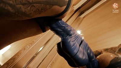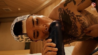 When he’s able to swallow most of it, Yoshi fucks himself roughly, with abandon. Back on the bed he rides the huge dildo to the base. Gorged on anal ecstasy, he collapses onto the mattress, pussy gaping, queefing and utterly destroyed.