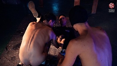 Clad in a spandex catsuit, horned-up Yoshi plays with himself in an abandoned attic. Two top fuckers, Fetish Dom Berlin and ItalianXLFF, stride in to begin teasing Yoshi. Kneeling down, he chokes on their oversized fucktools. Their dicks are slick and wet, covered in Yoshi's saliva. The cockstarved bottom gets spitroasted, wedged between Fetish Dom Berlin ramming into his throbbing ass and ItalianXLFF facefucking him.