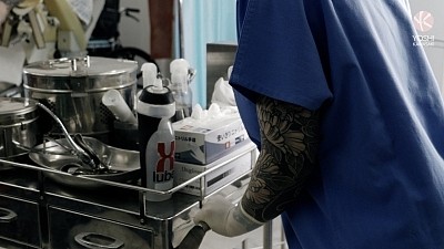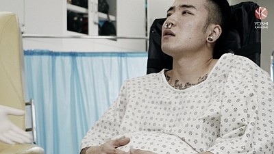 Dilated and in the first flush of cramps, Yoshi is rushed to the labour room in a wheelchair, tended by nurse Hinako. She helps him onto a delivery table, spreading his legs wide open to prepare for the birthing. His swollen nipples are pumped, filled with the mother's milk he's already producing. The attending physician, Dr. Axel, steps in to prepare the patient's birth canal, opening it wide with manual stretching. His fists stimulate Yoshi's vagina till he's pissing himself. Hinako is on the ball, catching the stream in a chamber pot.