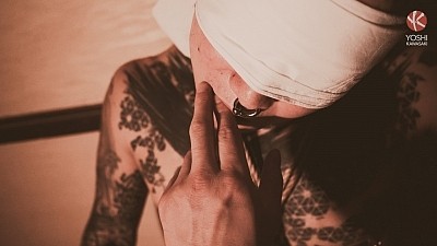 Yoshi's blindfolded, tied and immobilized with ropes around his legs and dick. Recently fucked and bred, the cum still leaks out of his loose hole. Now that the top is satisfied for the moment, he lets Yoshi touch his own dick to jerk off. The cumdump bottom is already hard. The top insults him and stuffs a pair of dirty underwear into his lowly mouth. He spanks Yoshi, twists his tender nipples, jerks him off and stomps on his dick. The grateful bottom shows his gratitude cleaning the top's sweaty feet. Yoshi reaches his climax, gets his load fed to him as reward for his unflinching service.