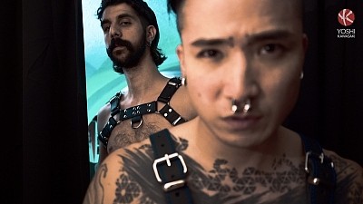 When traveling Yoshi stops by Brussels' notorious Spit It Out sex shop, he's looking for fetish gear, but keeping an eye open for whatever hot opportunity might turn up. When he goes into a secluded fitting room, he notices helpful and hungry staff member Leon Chevalier peering at him through a half-open curtain. Yoshi plays with his nipples to encourage Leon to make a move.