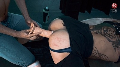 When Leon steps in, he rips open Yoshi's short to reveal his jockstrap and greedy pussy. He rims and fingers Yoshi's hole to warm him up, then uses a display model dildo to loosen that hole further. As good as that feels, horny Yoshi's not satisfied by a dildo and asks for something bigger. Obliging, Leon rams his fist in to give the customer what he wants. Fist fucking him hard, he provokes a scream out of Yoshi that echoes through the entire store. Finally satisfied, Yoshi decides to return the favour.