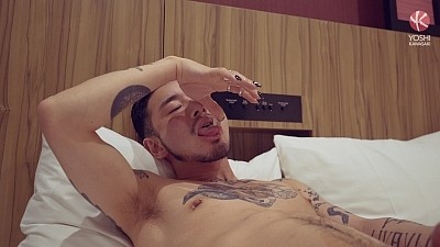 Edgy kinkster Yusaku lies in bed, not ready to sleep. Once he notices the camera, natural exhibitionism takes over and his hand goes to his oversized cock. Playing to an imagined audience, he shows off his lean tatted body and split tongue. Undies come down and he grabs the Prince Albert ring through the head of his dick. Heavy eyes barely open, only the throbbing of his meat keeps him awake as he pulls the foreskin up over his head.