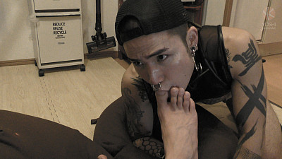 Yusaku has a split tongue, a pierced dick, also, an obedient pet. He never forgets train his pet what purpose it has.