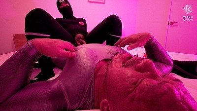 Shusaku and Kenta step inside, clad in spandex zentai, Kenta in a crotchless black bodystocking and hood, Shusaku in gleaming sliver. A pair of dickhungry superheroes dressed for action. Super sentai, or sentai for short, is Japanese for superhero team in full spandex bodysuits. This epic team drill each other’s holes with a superhero fury.